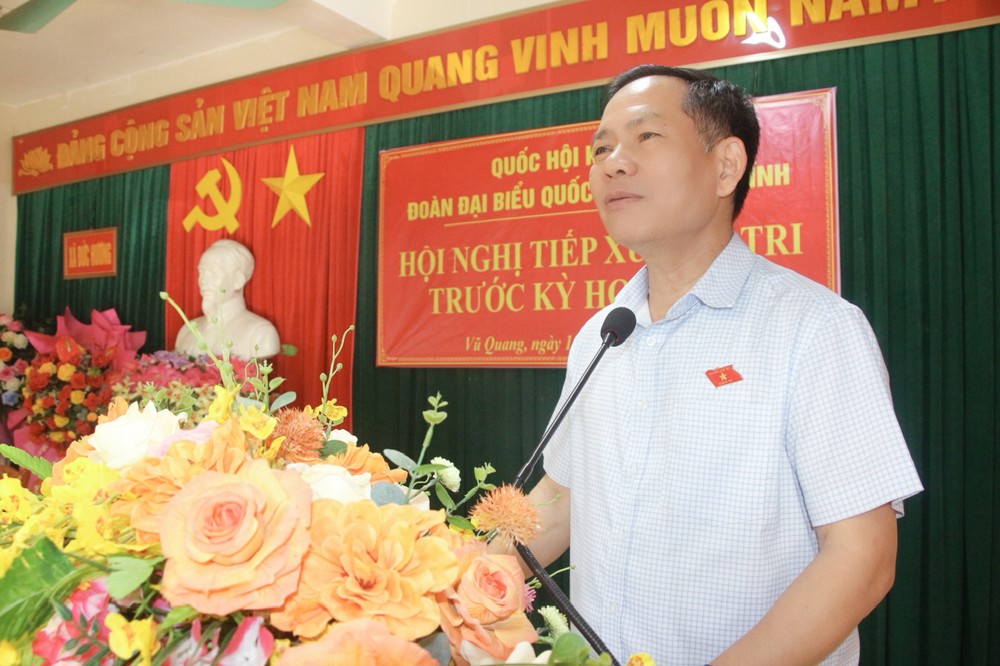 Sáng 15/4/2024, Phó Trưởng đoàn chuyên trách Đoàn đại biểu Quốc hội (ĐBQH) tỉnh Trần Đình Gia và đại biểu Quốc hội, Chánh án Tòa án nhân dân tỉnh Phan Thị Nguyệt Thu đã tiếp xúc cử tri trước kỳ họp thứ 9, Quốc hội khóa XV tại xã Đức Hương huyện Vũ Quang. Cùng dự có lãnh đạo Ban Văn hóa - Xã hội HĐND tỉnh; các sở, ngành, đơn vị: Công an tỉnh, Tài chính, Sở Nông nghiệp và Môi trường, Nội vụ, Ủy ban MTTQ tỉnh.