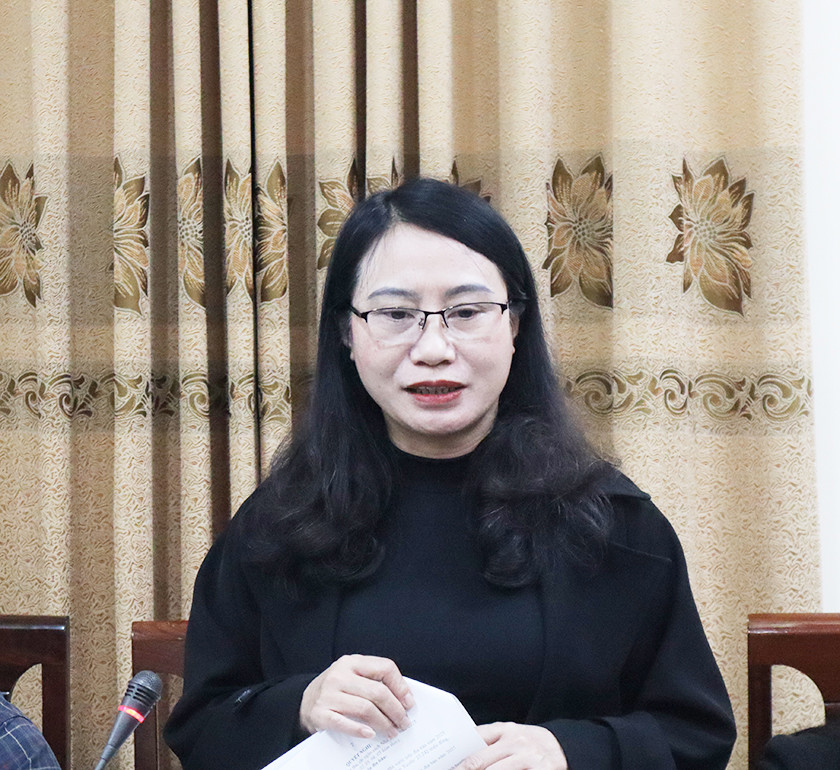 Trưởng ban Kinh tế - Ngân sách HĐND tỉnh Nguyễn Thị Thúy Nga kết luận tại cuộc làm việc |