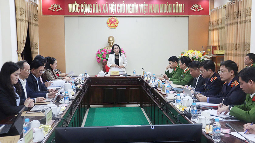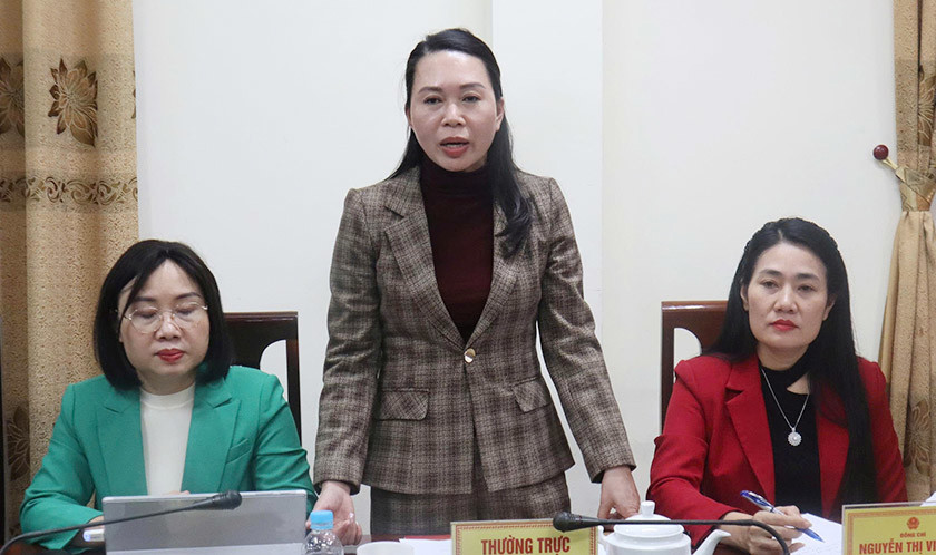 Trưởng ban Pháp chế HĐND tỉnh Nguyễn Thị Nhuần kết luận tại cuộc làm việc. |