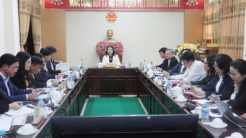 Trưởng ban Pháp chế HĐND tỉnh Nguyễn Thị Nhuần kết luận tại cuộc làm việc. |