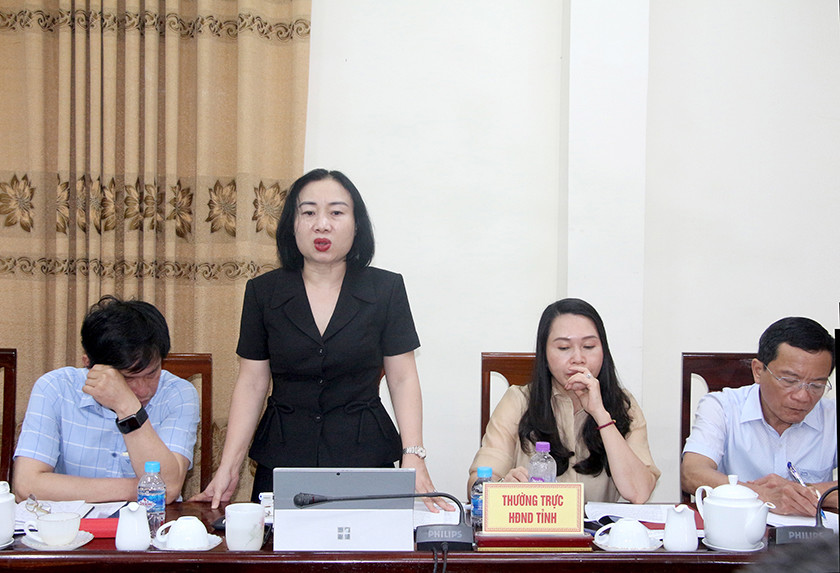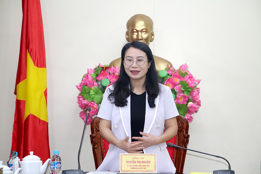 Trưởng ban Pháp chế HĐND tỉnh Nguyễn Thị Nhuần chủ trì cuộc làm việc. |