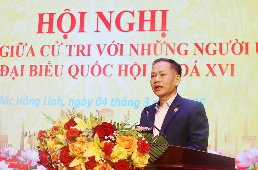 Sáng 4/3, tại phường Bắc Hồng Lĩnh, Ban Thường trực Ủy ban MTTQ tỉnh Hà Tĩnh tổ chức hội nghị tiếp xúc cử tri của những người ứng cử ĐBQH khóa XVI và đại biểu HĐND tỉnh khóa XIX tại đơn vị bầu cử Quốc hội số 3, gồm các phường, xã: Bắc Hồng Lĩnh, Nam Hồng Lĩnh, Đức Thịnh, Trường Lưu, Đức Minh, Đức Thọ, Đức Đồng, Đức Quang, Vũ Quang, Mai Hoa, Thượng Đức, Hương Sơn, Sơn Tây, Sơn Giang, Sơn Tiến, Sơn Hồng, Sơn Kim 1, Sơn Kim 2, Kim Hoa, Tứ Mỹ, Hương Khê, Hương Phố, Hương Đô, Hà Linh, Hương Bình, Phúc Trạch, Hương Xuân