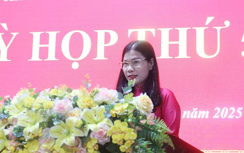 Phó Chủ tịch UBND phường Trần Phú Lê Thị Phương Chi trình bày báo cáo tình hình thực hiện nhiệm vụ phát triển KT-XH, QP-AN năm 2025; kế hoạch thực hiện nhiệm vụ năm 2026 |