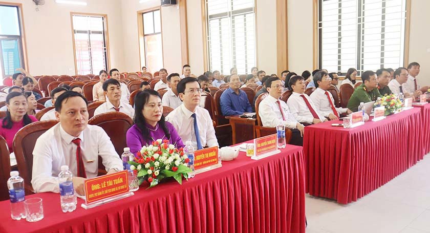 Phó Trưởng ban Nội chính Tỉnh ủy Nguyễn Thanh Điện; Trưởng ban Pháp chế HĐND tỉnh Nguyễn Thị Nhuần và đại biểu tặng hoa chúc mừng các đồng chí trúng cử các chức danh chủ chốt HĐND, UBND xã Kỳ Xuân nhiệm kỳ 2026-2031 |