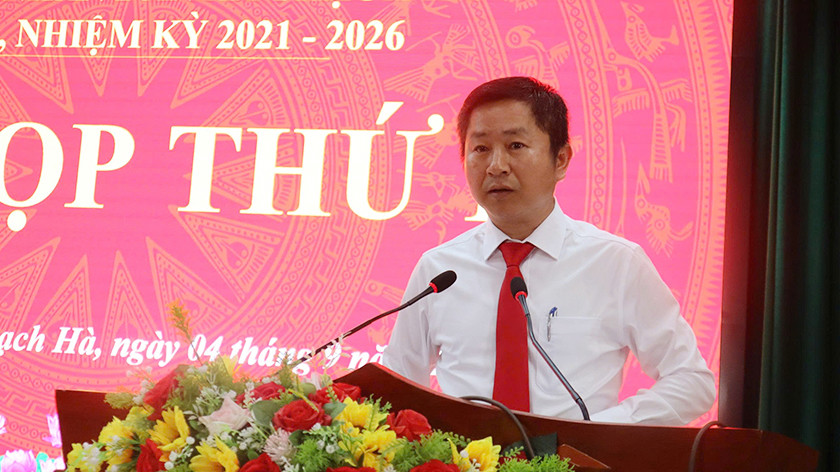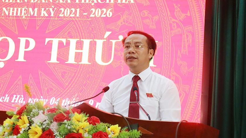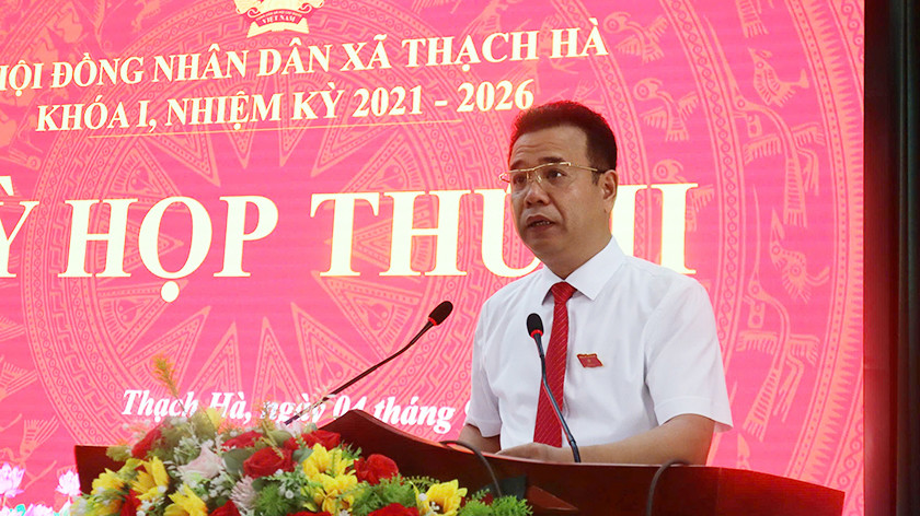 Bí thư Đảng uỷ, Chủ tịch HĐND xã Thạch Hà Nguyễn Việt Hùng phát biểu khai mạc kỳ họp |