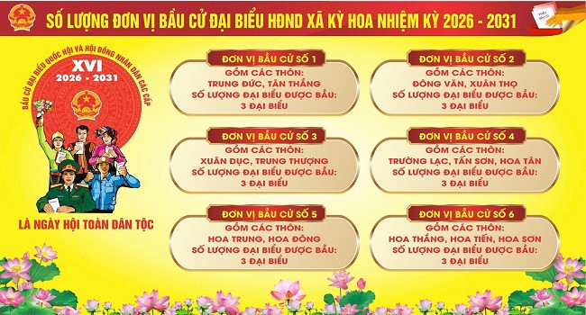 Với sự vào cuộc đồng bộ, trách nhiệm của cả hệ thống chính trị, xã Kỳ Hoa quyết tâm tổ chức thành công cuộc bầu cử đại biểu Quốc hội khóa XVI và đại biểu HĐND các cấp nhiệm kỳ 2026 - 2031, đáp ứng niềm tin và kỳ vọng của Nhân dân trên địa bàn.