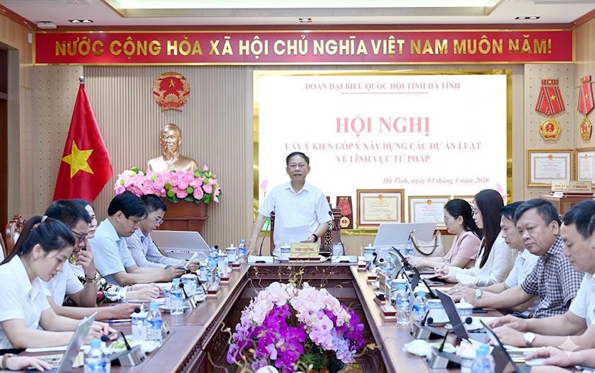 Sáng 3/4, Đoàn đại biểu Quốc hội tỉnh Hà Tĩnh phối hợp với Sở Tư pháp tổ chức hội nghị lấy ý kiến góp ý xây dựng các dự án luật thuộc lĩnh vực tư pháp. Phó Trưởng đoàn chuyên trách phụ trách Đoàn QBQH tỉnh khóa XVI Trần Đình Gia chủ trì hội nghị