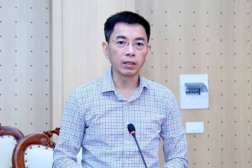 Giám đốc Sở Tư pháp Nguyễn Quốc Tuấn báo cáo nội dung tại hội nghị |