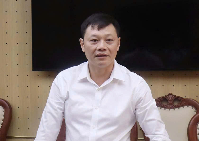 Tổng Giám đốc Tổng Công ty Khoáng sản và Thương mại Hà Tĩnh Nguyễn Anh Thắng phát biểu.