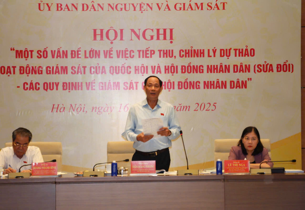 Thứ tư , quy định rõ về giám sát liên cấp và thành lập đoàn giám sát liên cấp. Dự thảo Luật cần bổ sung một điều khoản mới để quy định cơ chế phối hợp giám sát giữa Quốc hội, HĐND cấp tỉnh và thành lập các đoàn giám sát liên cấp, có sự tham gia của đại diện Quốc hội, HĐND cấp tỉnh, đặc biệt đối với các vấn đề phức tạp như thực hiện chính sách an sinh xã hội, quản lý tài nguyên hoặc đầu tư công.