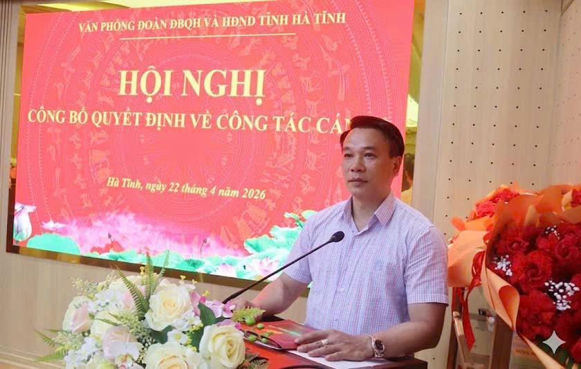 Sáng 22/4, Văn phòng Đoàn ĐBQH và HĐND tỉnh Hà Tĩnh tổ chức lễ công bố các quyết định tiếp nhận cán bộ về thực hiện nhiệm vụ Ủy viên là đại biểu HĐND tỉnh hoạt động chuyên trách tại các ban của HĐND tỉnh.