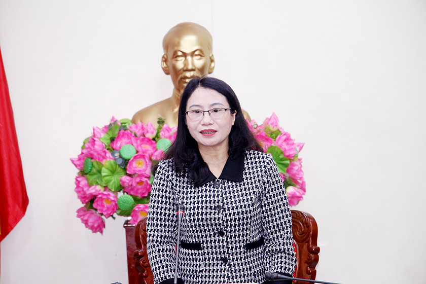 Trưởng ban Pháp chế HĐND tỉnh Nguyễn Thị Nhuần chủ trì cuộc làm việc. |