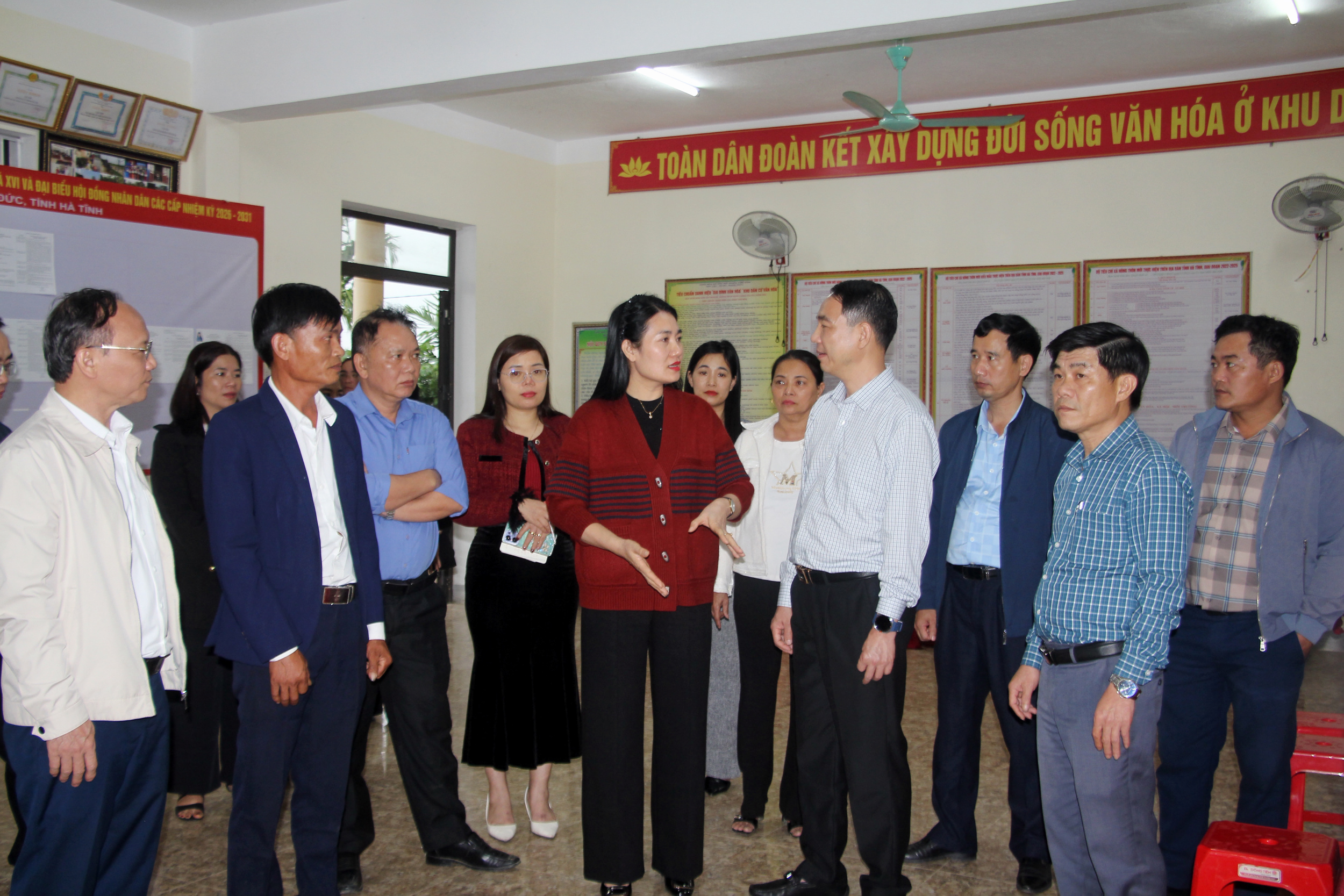 Phó Chủ tịch Hội đồng nhân dân tỉnh Nguyễn Thị Việt Hà giám sát công tác bầu cử tại xã Cổ Đạm và xã Thượng Đức. |