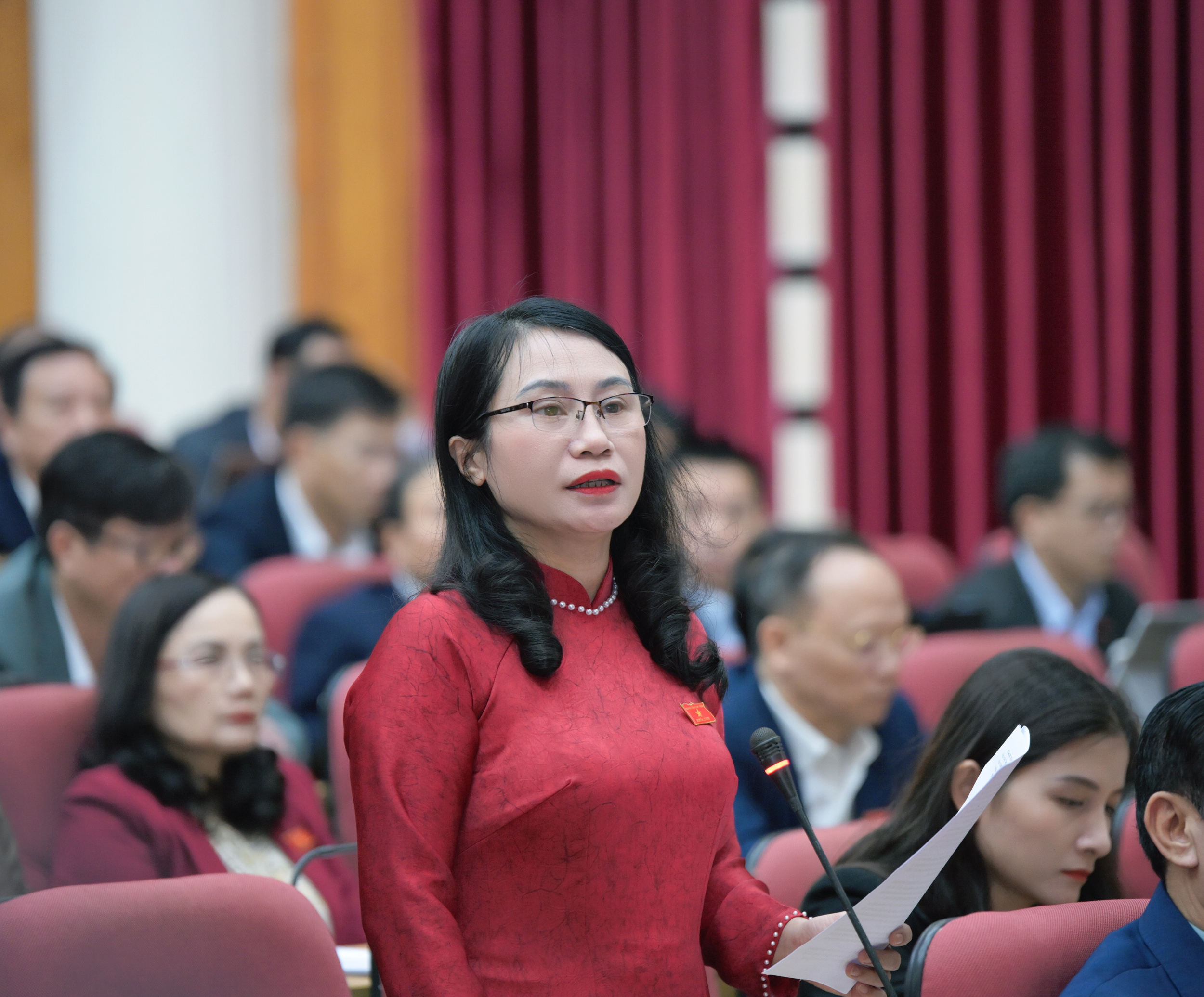 | Trưởng ban Pháp chế Hội đồng nhân dân tỉnh Nguyễn Thị chất vấn tại Kỳ họp thứ 23, Hội đồng nhân dân tỉnh khóa XIX |