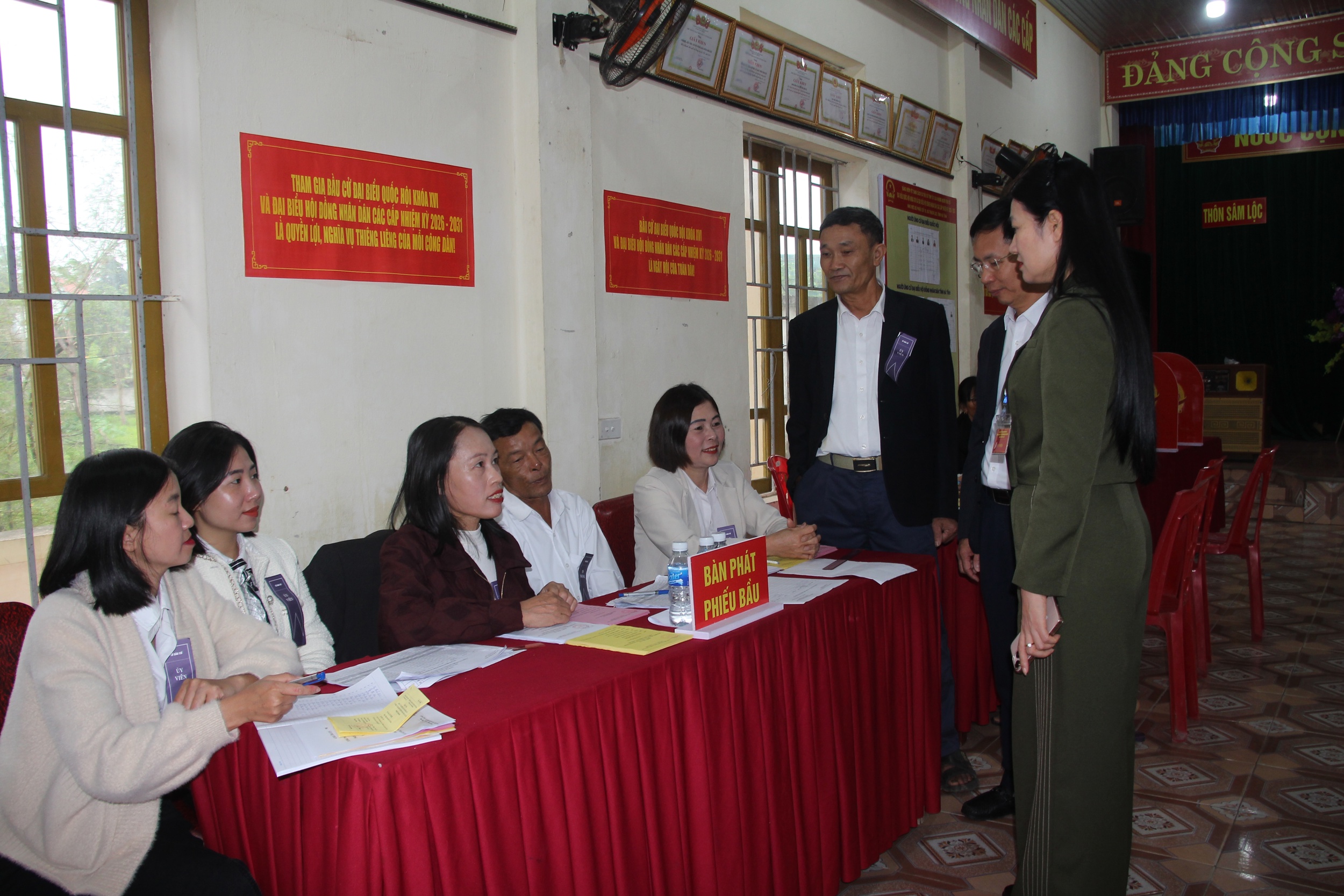 Đồng chí Nguyễn Thị Việt Hà, Ủy viên Ban Chấp hành Đảng bộ tỉnh, Phó Chủ tịch Hội đồng nhân dân tỉnh, Ủy viên Ủy ban bầu cử tỉnh kiểm tra tại xã Thạch Lạc...