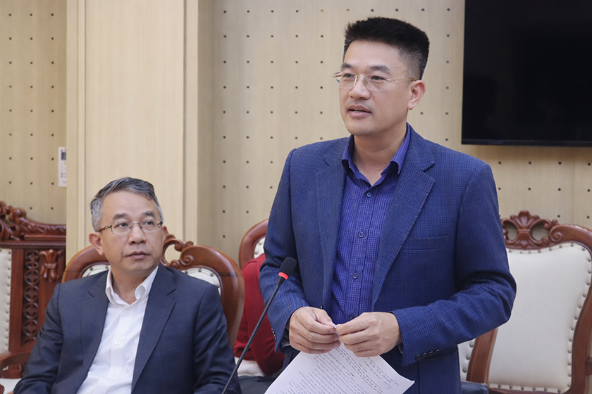 Phó Giám đốc Sở Tài chính Lê Anh Dũng báo cáo và giải trình các nội dung liên quan đến ngành |