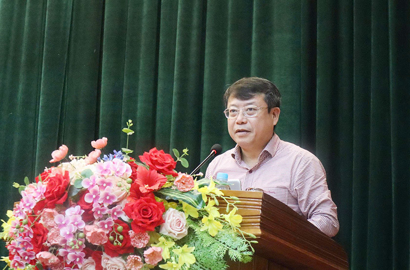 Phó Chủ tịch Thường trực HĐND tỉnh Dương Tất Thắng phát biểu tại buổi tập huấn. |