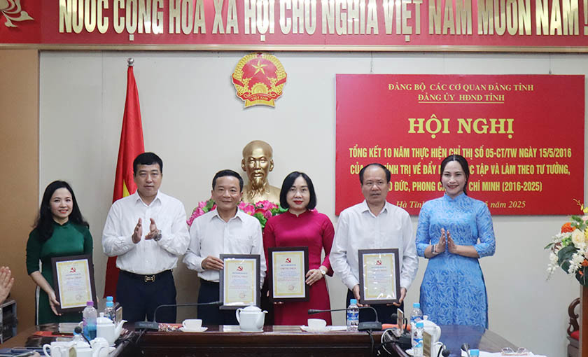Nhân dịp này, Đảng bộ HĐND tỉnh đã biểu dương, vinh danh cho 05 đồng chí có thành tích xuất sắc trong học tập và làm theo tư tưởng, đạo đức, phong cách Hồ Chí Minh giai đoạn 2016-2025.