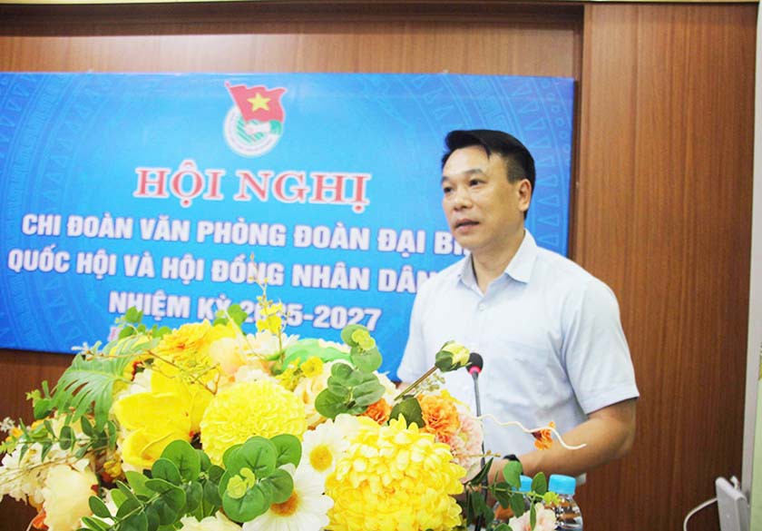 Phát biểu chỉ đạo tại Hội nghị, đồng chí Nguyễn Huy Hùng – Chánh Văn phòng Đoàn ĐBQH và HĐND tỉnh ghi nhận, biểu dương tinh thần đoàn kết, trách nhiệm và những kết quả nổi bật mà Chi đoàn đạt được trong thời gian qua. Đồng chí nhấn mạnh, dù mới thành lập, Chi đoàn đã nhanh chóng ổn định tổ chức, triển khai hiệu quả các hoạt động, khẳng định vai trò xung kích, sáng tạo của tuổi trẻ Văn phòng trong tham mưu, phục vụ các hoạt động của HĐND và Đoàn ĐBQH tỉnh.