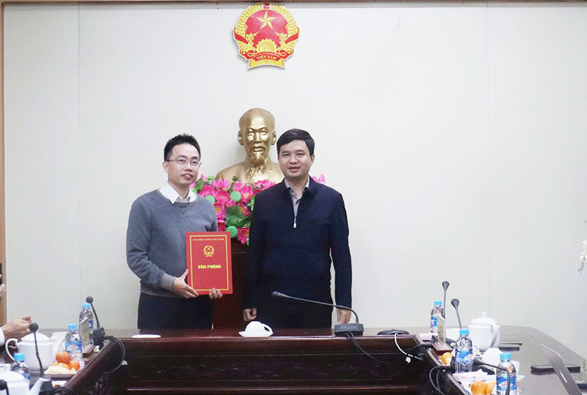 Lãnh đạo Văn phòng Đoàn ĐBQH và HĐND tỉnh trao quyết định và tặng hoa cho đồng chí Nguyễn Duy Quang |