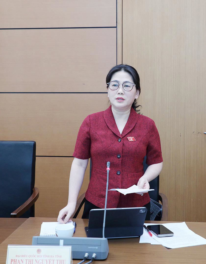 Đại biểu Phan Thị Nguyệt Thu, Chánh án TAND tỉnh phát biểu thảo luận |