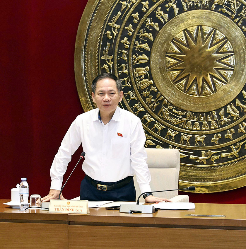 Phó Trưởng đoàn Phụ trách Đoàn ĐBQH tỉnh Trần Đình Gia chủ trì phiên thảo luận tổ 14 gồm ĐBQH các tỉnh: Hà Tĩnh, Quảng Ninh, An Giang.