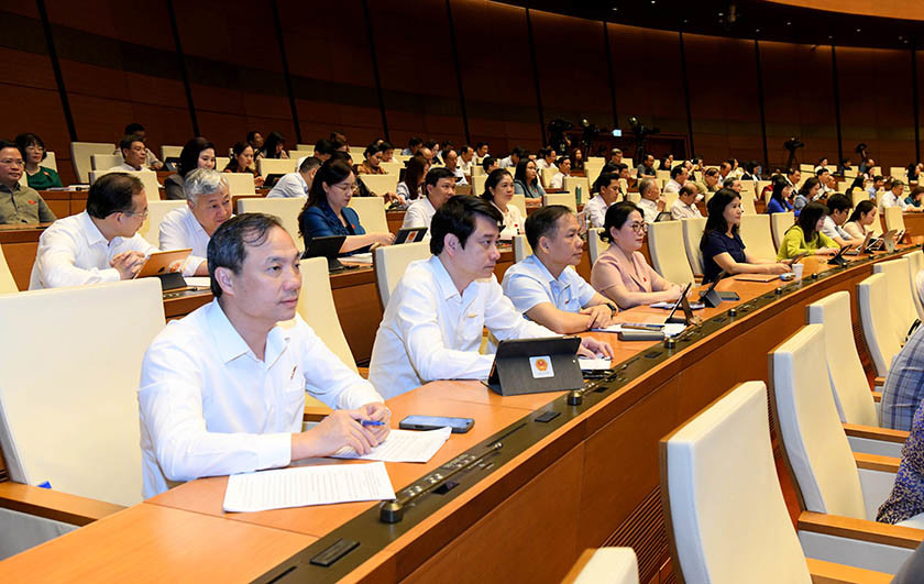 Các đại biểu Quốc hội Đoàn Hà Tĩnh tham gia thảo luận hội trường sáng 14/5.
