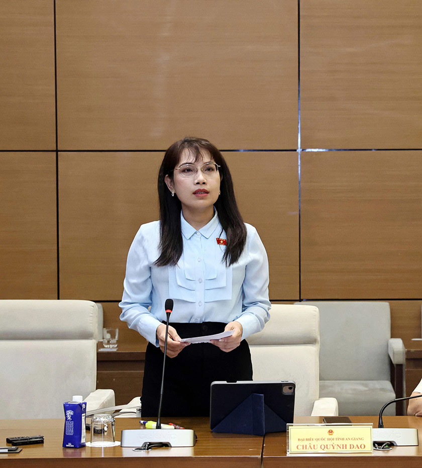 Đại biểu Châu Quỳnh Giao, Đoàn ĐBQH tỉnh An Giang thảo luận. |