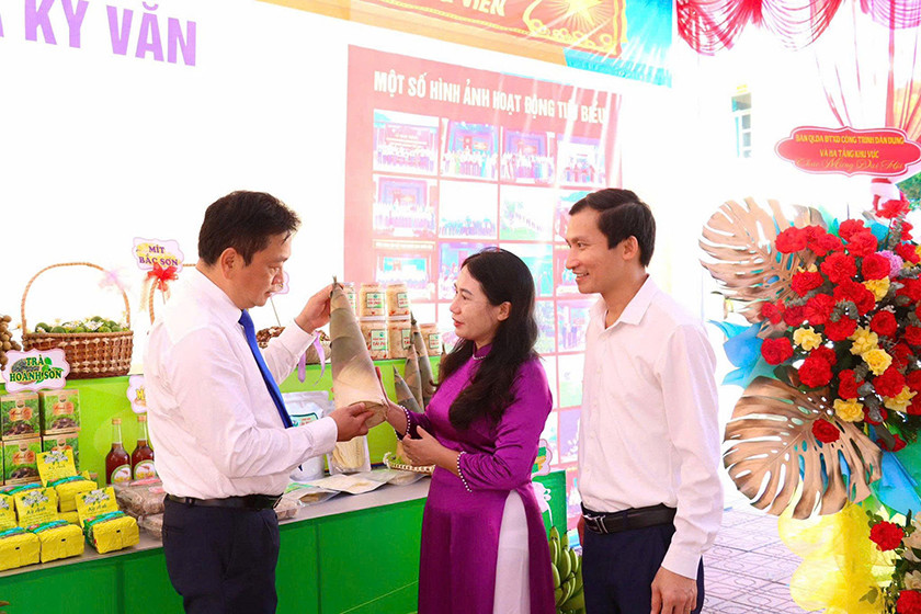 Đại biểu tham quan gian hàng OCOP và nông sản xã Kỳ Văn |