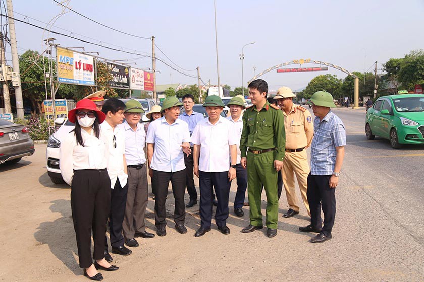 Đoàn ĐBQH tỉnh và các đơn vị kiểm tra thực tế điểm giao cắt giữa quốc lộ 1 với đường Trần Duệ Tông ở TDP Hưng Bình, phường Hưng Trí |