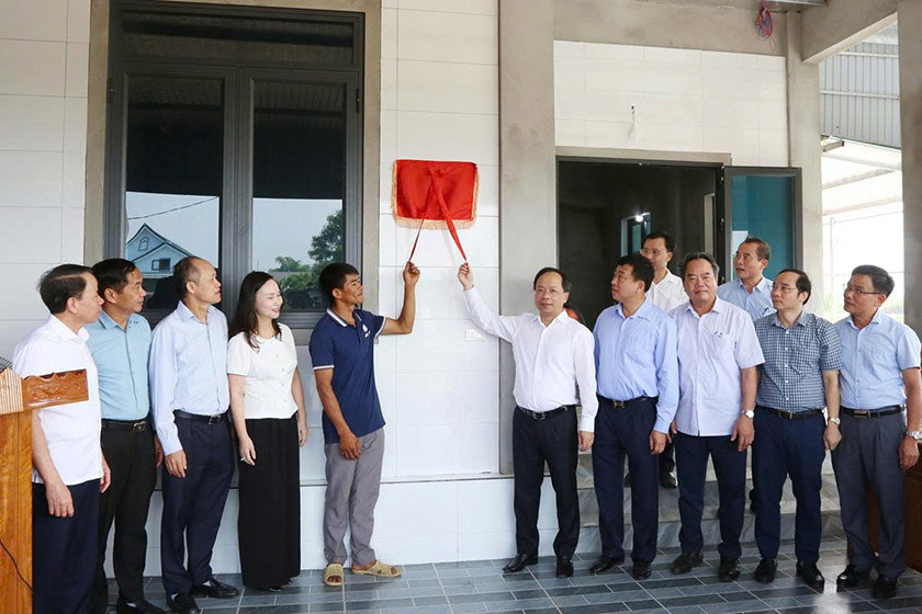 Bí thư Tỉnh ủy Nguyễn Duy Lâm cùng các đồng chí lãnh đạo tỉnh đã đến dự lễ khánh thành công trình nhà ở cho gia đình ông Tôn Văn Tuấn và bà Bùi Thị Thiên (thôn Đoài Duyệt, xã Vượng Lộc).