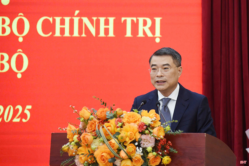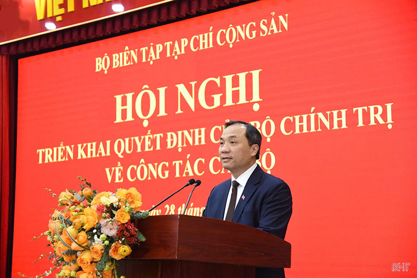 Đồng chí Lê Minh Hưng - Ủy viên Bộ Chính trị, Bí thư Trung ương Đảng, Trưởng ban Tổ chức Trung ương phát biểu chúc mừng và giao nhiệm vụ cho tân Tổng Biên tập Tạp chí Cộng sản ( ảnh baohatinh.vn) |