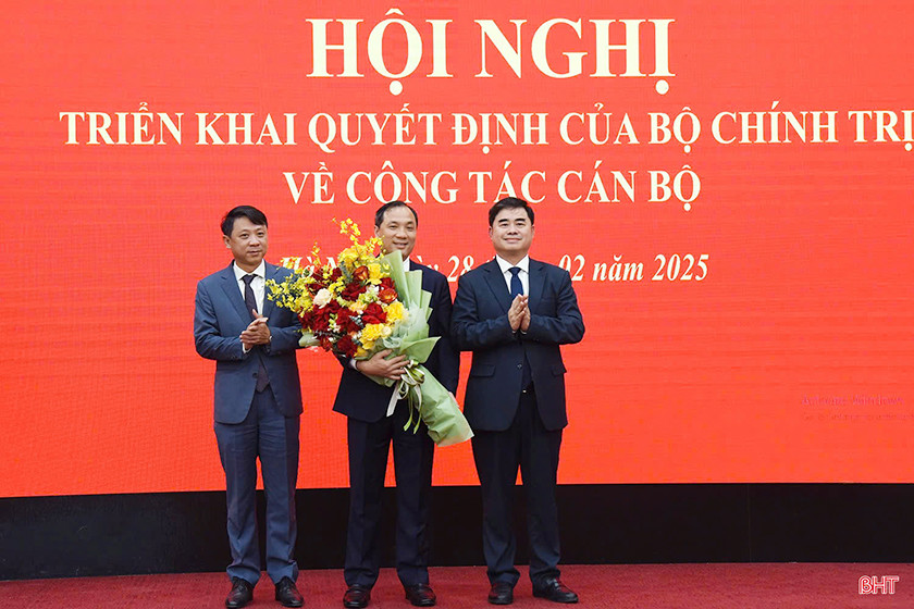 Thường trực Tỉnh ủy Hà Tĩnh tặng hoa chúc mừng đồng chí Hoàng Trung Dũng ( ảnh baohatinh.vn) |