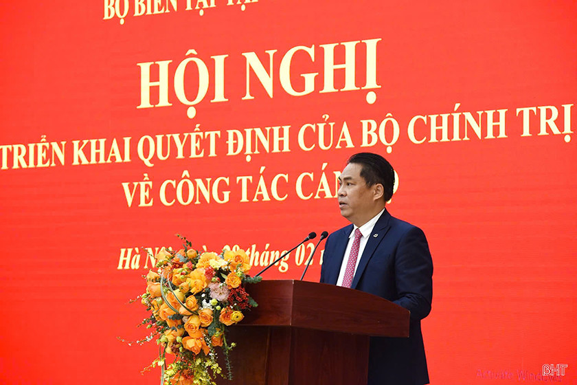 Phó Trưởng ban Tổ chức Trung ương Phan Thăng An công bố quyết định của Bộ Chính trị (ảnh baohatinh.vn) |