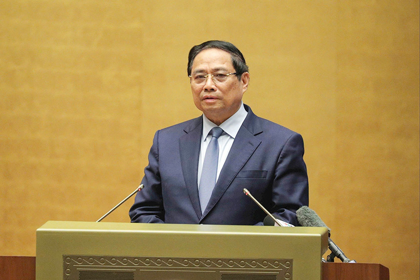 Thủ tướng Chính phủ Phạm Minh Chính truyền đạt chuyên đề 1: : Nội dung trọng tâm, cốt lõi của Nghị quyết số 71-NQ/TW về đột phá phát triển giáo dục và đào tạo và chương trình hành động của Chính phủ thực hiện Nghị quyết này. (ảnh Hồ Long) |