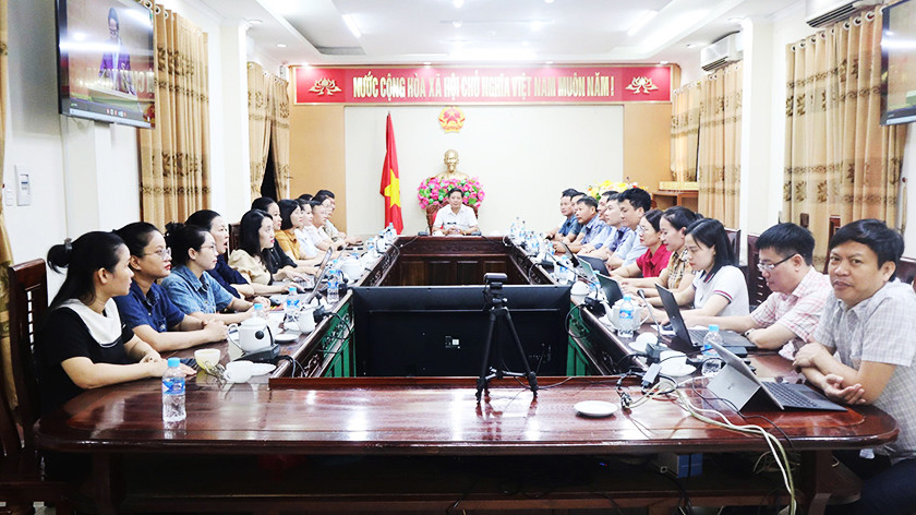 Đại biểu tham dự hội nghị tại điểm cầu Văn phòng UBND tỉnh. (ảnh Báo HT) |