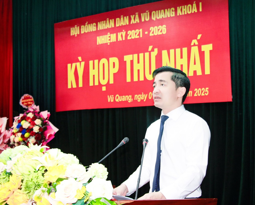 Phát biểu tại kỳ họp, Phó Chủ tịch HĐND tỉnh Trần Văn Kỳ tin tưởng 90 vị đại biểu HĐND xã Vũ Quang sẽ phát huy tốt những phẩm chất của người đại biểu nhân dân, phát huy những kinh nghiệm quý báu đã tích lũy được trong quá trình công tác để thực hiện tốt nhất chức trách, nhiệm vụ chuyên môn ở từng vị trí, việc làm góp phần xây dựng xã Vũ Quang ngày càng phát triển. Đồng thời đề nghị, thời gian tới HĐND, Thường trực HĐND, các Ban, Tổ và mỗi vị đại biểu HĐND xã Vũ Quang nêu cao tinh thần trách nhiệm, phát huy thuận lợi, khắc phục khó khăn phấn đấu hoàn thành tốt nhiệm vụ được giao. Tiếp tục tham mưu kiện toàn, hoàn thiện tổ chức bộ máy của HĐND, các tổ chức trong hệ thống chính trị. Xây dựng kế hoạch hàng tháng, hàng tuần và phân công cho các tổ chức, cá nhân thực hiện. Thường xuyên quan tâm giải quyết thủ tục hành chính của người dân và doanh nghiệp đảm bảo thông suốt, hiệu quả, không bị gián đoạn. Sớm kiện toàn Ban Chỉ đạo phòng chống cứu nạn cứu hộ, phân công nhiệm vụ cho các thành viên với phương châm 4 tại chỗ để sẵn sàng thực hiện nhiệm vụ khi thiên tai bất ngờ xảy ra, đảm bảo tính mạng, tài sản cho người dân.