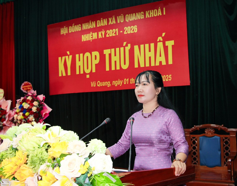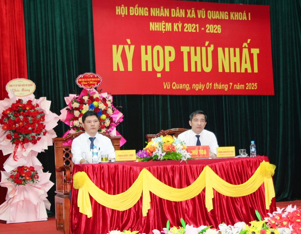 Tại kỳ họp, HĐND xã Vũ Quang đã công bố các Nghị quyết về nhân sự, thành lập các Ban Hội đồng nhân dân, các phòng chuyên môn thuộc Ủy ban nhân dân, gồm: Nghị quyết của Thường trực HĐND tỉnh về chỉ định đại biểu HĐND huyện về thực hiện nhiệm vụ đại biểu HĐND xã; thông báo số lượng đại biểu HĐND của xã; các Nghị quyết của Thường trực HĐND tỉnh về việc: chỉ định Chủ tịch, Phó Chủ tịch, Trưởng các Ban HĐND xã; chỉ định Chủ tịch, Phó Chủ tịch UBND xã.