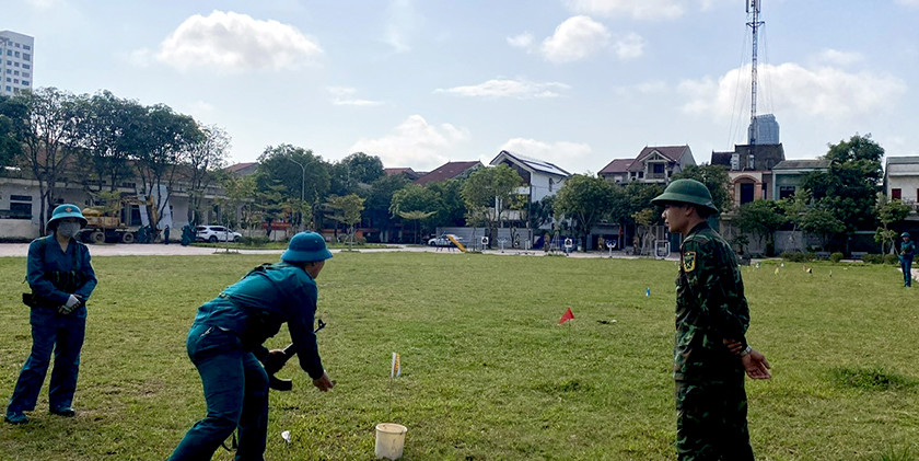 Chiến sỹ tự vệ của Văn phòng Đoàn ĐBQH và HĐND tỉnh huấn luyện ném lựu đạn (năm 2023) |