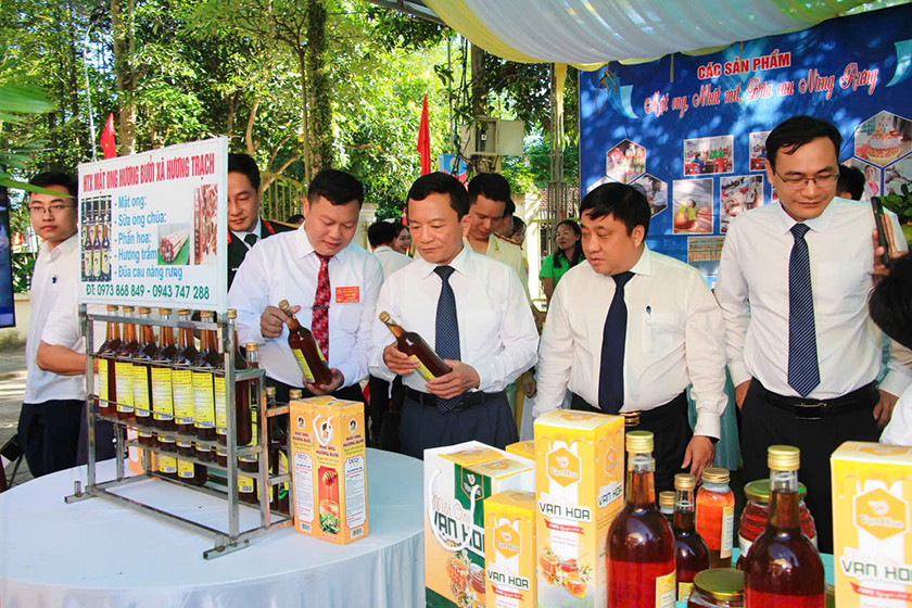 Đại biểu tham quan gian hàng OCOP và nông sản xã Phúc Trạch. |