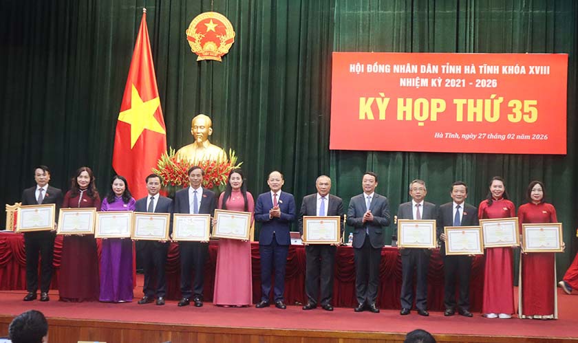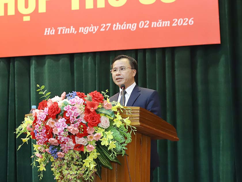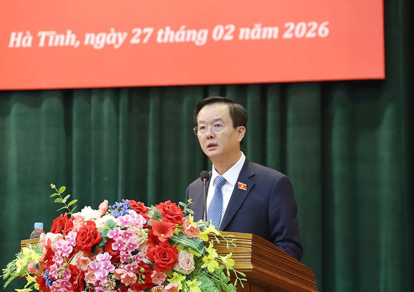 Sáng 27/2, Hội đồng nhân dân tỉnh Hà Tĩnh khóa XVIII tổ chức Kỳ họp thứ 35 - kỳ họp chuyên đề nhằm đánh giá hoạt động nhiệm kỳ 2021-2026 và xem xét, quyết nghị một số nội dung thuộc thẩm quyền. Các đồng chí: Phó Bí thư Thường trực Tỉnh ủy - Chủ tịch HĐND tỉnh Nguyễn Hồng Lĩnh; Phó Chủ tịch Thường trực HĐND tỉnh Dương Tất Thắng và Phó Chủ tịch HĐND tỉnh Nguyễn Thị Việt Hà chủ trì kỳ họp
