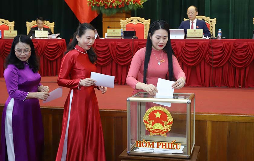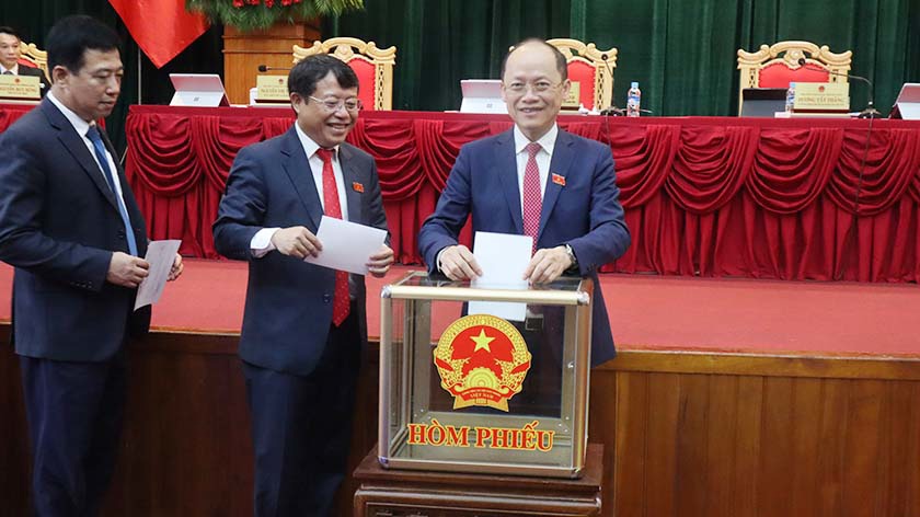 Các đồng chí lãnh đạo tỉnh bỏ phiếu miễn nhiệm và bầu bổ sung Ủy viên UBND tỉnh nhiệm kỳ 2021–2026 |