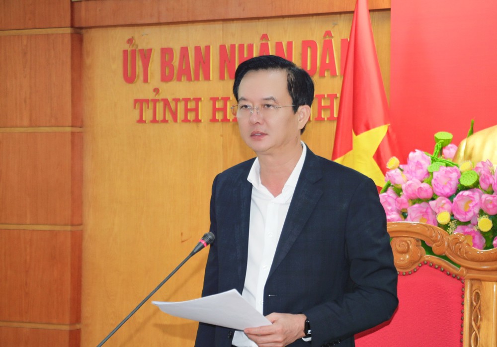 Đồng chí Nguyễn Hồng Lĩnh, Phó Bí thư Thường trực Tỉnh ủy, Chủ tịch Hội đồng nhân dân tỉnh và đồng chí Trần Báu Hà, Phó Chủ tịch Thường trực Ủy ban nhân dân tỉnh chủ trì cuộc họp.