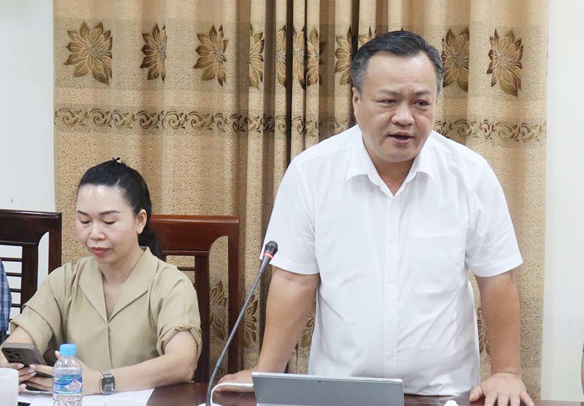 Chánh Văn phòng Đoàn ĐBQH và HĐND tỉnh Nguyễn Huy Hùng trình bày nội dung cuộc làm việc |