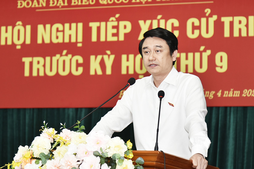 Mở đầu hội nghị tiếp xúc cử tri, thay mặt Đoàn ĐBQH tỉnh, đồng chí Lê Anh Tuấn - Phó Chủ nhiệm Ủy ban Đối ngoại của Quốc hội, Thứ trưởng Bộ Ngoại giao đã thông tin tới cử tri về kết quả hoạt động của Đoàn ĐBQH tỉnh sau Kỳ họp thứ 8 đến nay; dự kiến nội dung, chương trình, thời gian tiến hành Kỳ họp thứ 9, Quốc hội khóa XV.